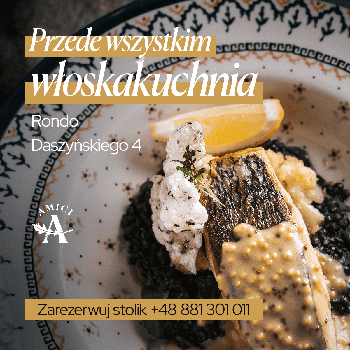 Amici to włoska restauracja premium, znajdująca się w biznesowym sercu Warszawy – przy samym Rondzie Daszyńskiego. To nie tylko doskonała kuchnia, ale również designerskie wnętrza charakteryzujące się minimalizmem, elegancją i wyjątkowym charakterem.