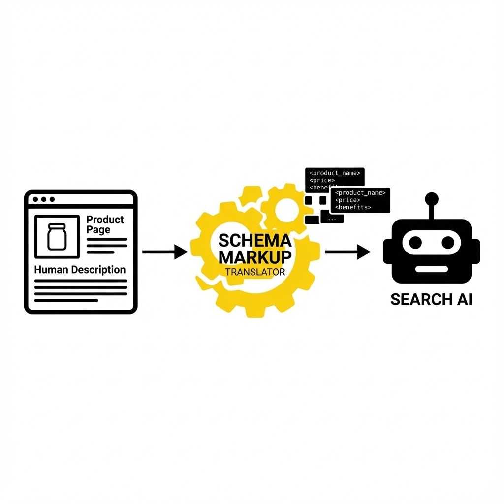 dane strukturalne (dla organiki): znane jako schema markup. To Twój „tłumacz” w komunikacji z robotem. AI nie widzi strony tak jak człowiek - widzi kod. Bez danych strukturalnych robot musi zgadywać, co jest czym. Wdrażając strukturę, przyklejasz cyfrowe etykiety: „to jest cena”, „to jest ocena klientów”, „to jest dostępność”. Bez tego AI może nie zrozumieć Twojej oferty i pominąć ją w wynikach.